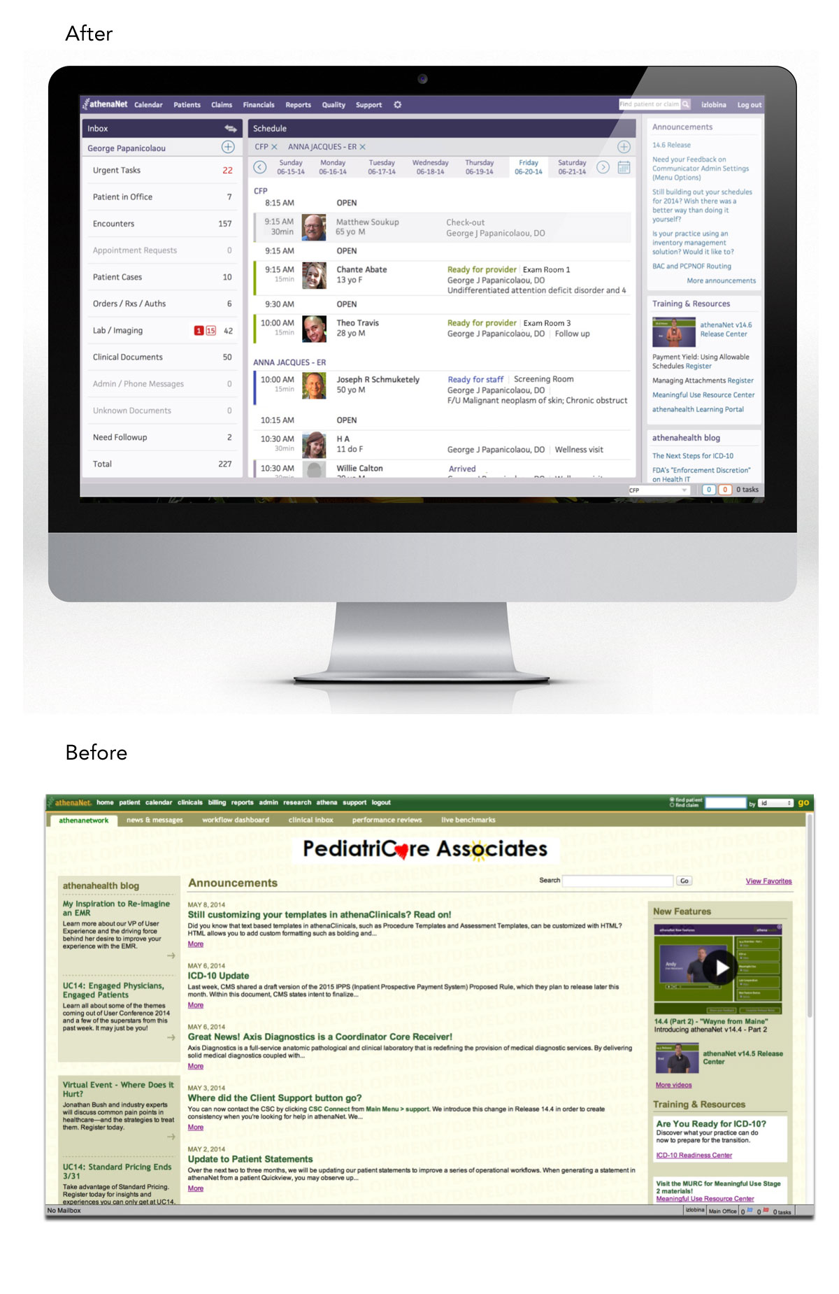 Objective: Reimagine athenaNet (EMR) to offer simple, intuitive methods for organizing medical records, care management solutions and practice workflows, making it faster, easier, and more satisfying for users.