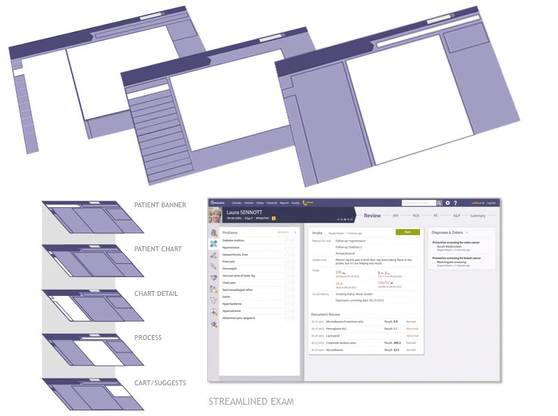 My Role: As a UX lead of two groups I was at the heart of the redesign project, responsible for defining the project scope and creating conceptual frameworks and documentation designed to guide a more accessible and gratifying user experience for a streamlined Electronic Medical Record system.